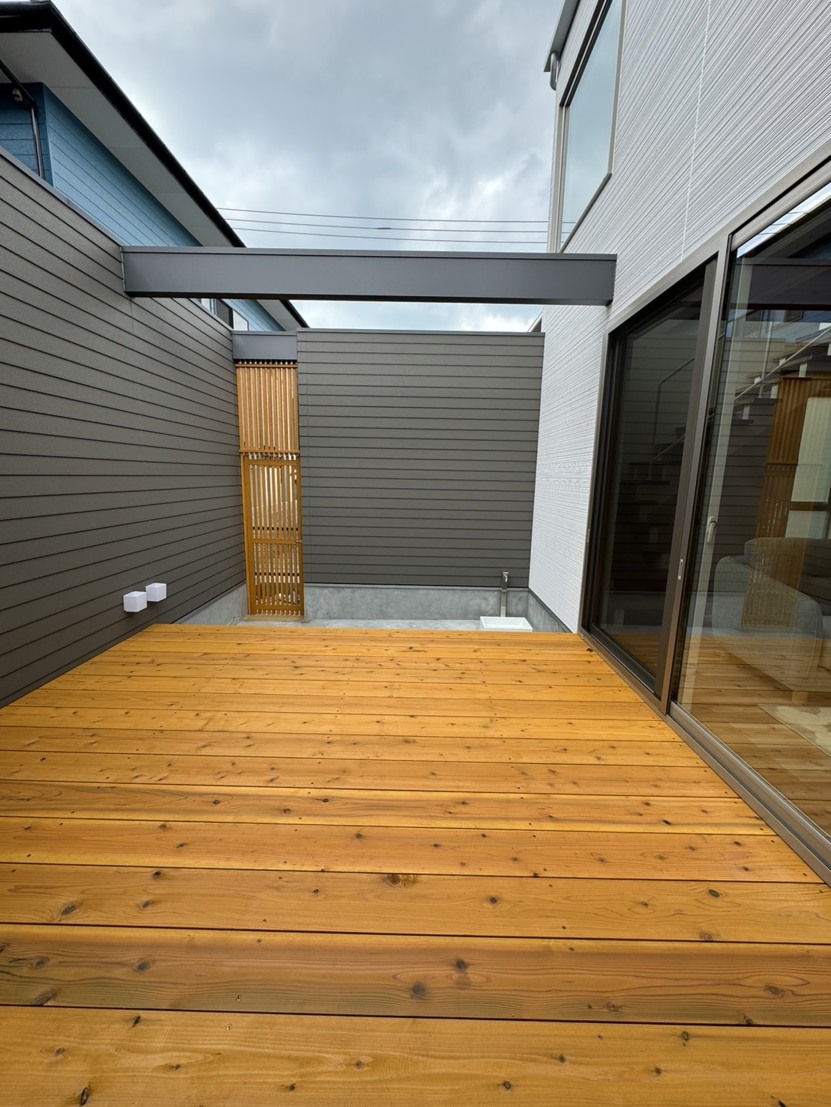 ▶軒の深いテラスが、内と外をゆるやかに繋ぎます。