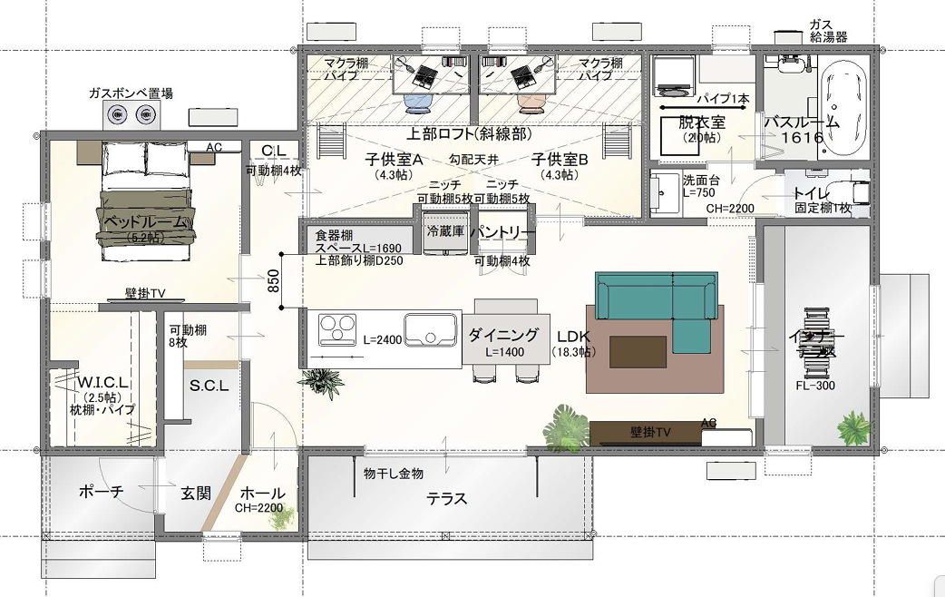 下のスペースは、仕切られているのでお部屋が2つに分かれているような感覚で、それぞれの「自分の場所」を楽しめます♩