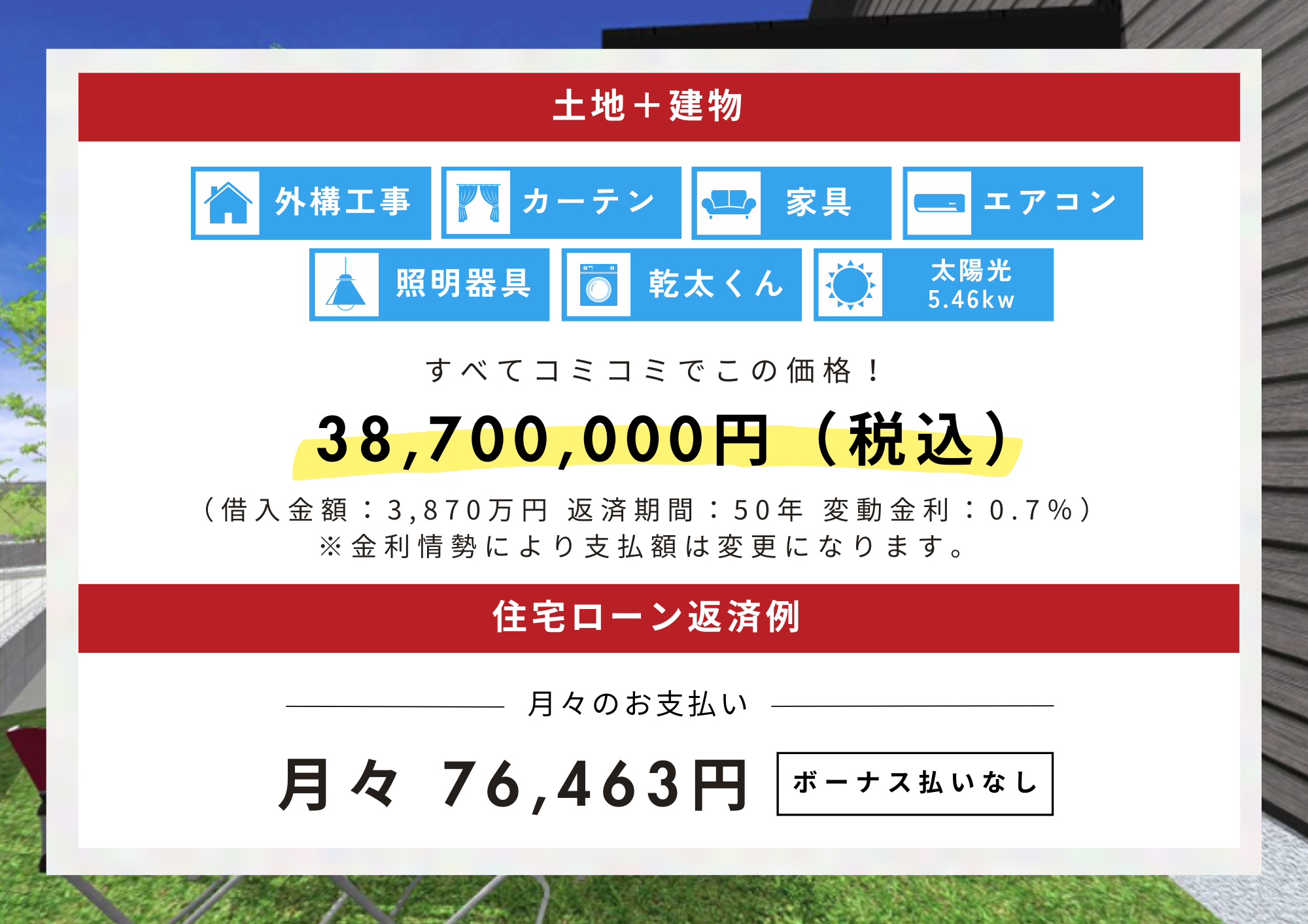 ホーム 物件情報 王喜本町6号地S-ZEHモデルハウス【分譲住宅】 お気に入り物件一覧 王喜本町6号地S-ZEHモデルハウス【分譲住宅】 お気に入りに登録する 解除する この物件の 資料請求 来場予約 コンセプト 物件概要 お家の特徴 立地・周辺環境・MAP お支払い例・間取 ランドプラン floor 床面積:81.56㎡(24.67坪) この物件の 資料請求 一覧へ戻る 0120-939-235 受付/10:00~18:00 定休日/水曜日 お気に入り一覧を見る この物件の来場予約 この物件の資料請求 電話