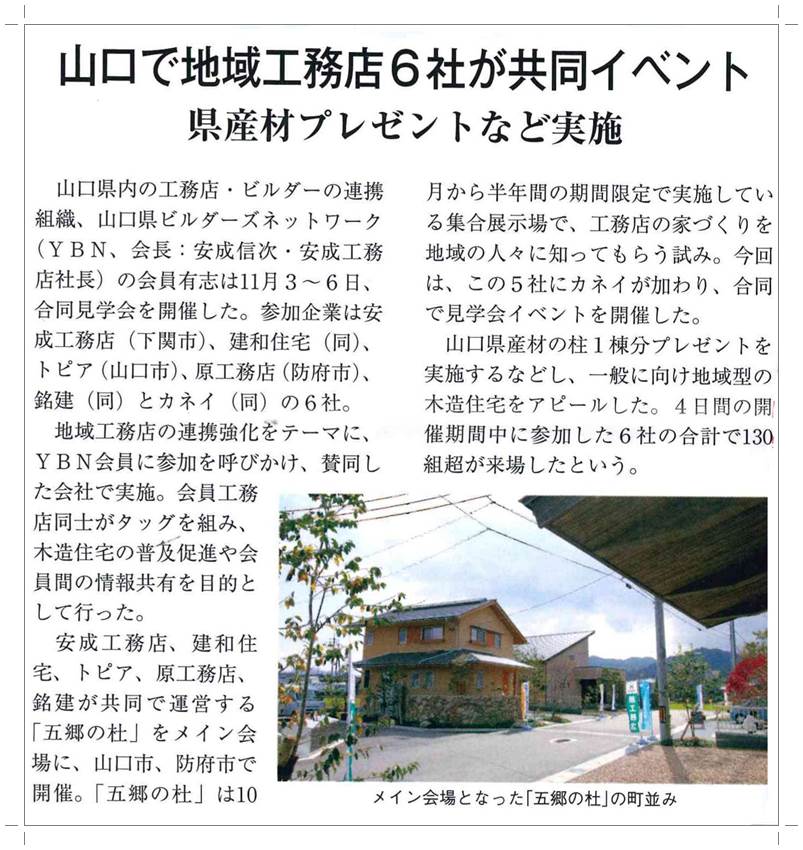 山口で地域工務店6社が共同イベント~県産材プレゼントなど実施~
