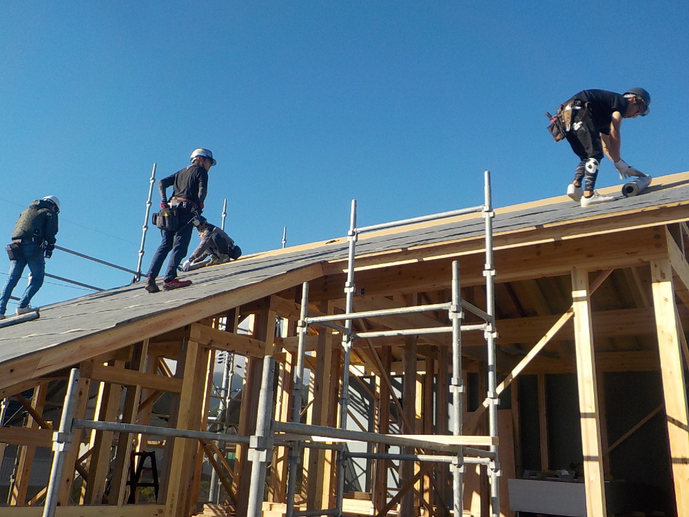 サイティング貼りも終わり、樋工事も終わりましたので、建物の外周になった足場を取り外し、お家全体が見えるようになりました♩