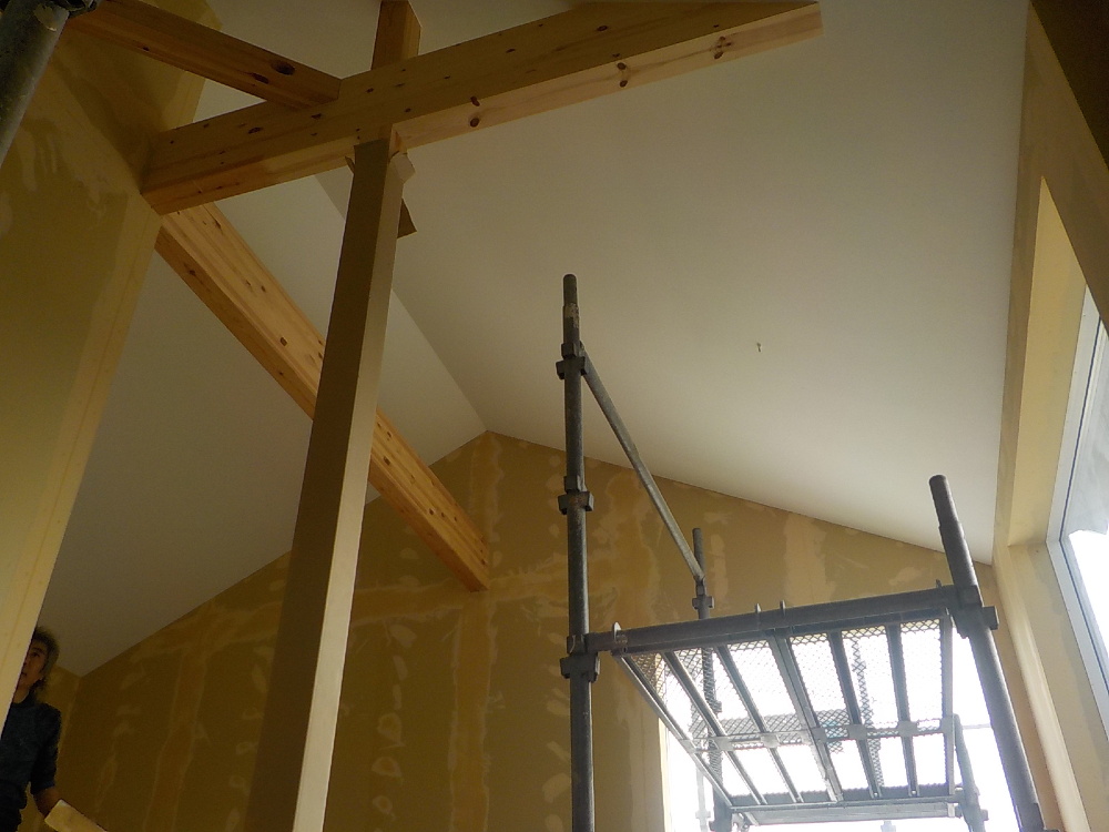吹き抜けの天井部分に、クロスが貼られました(^^)