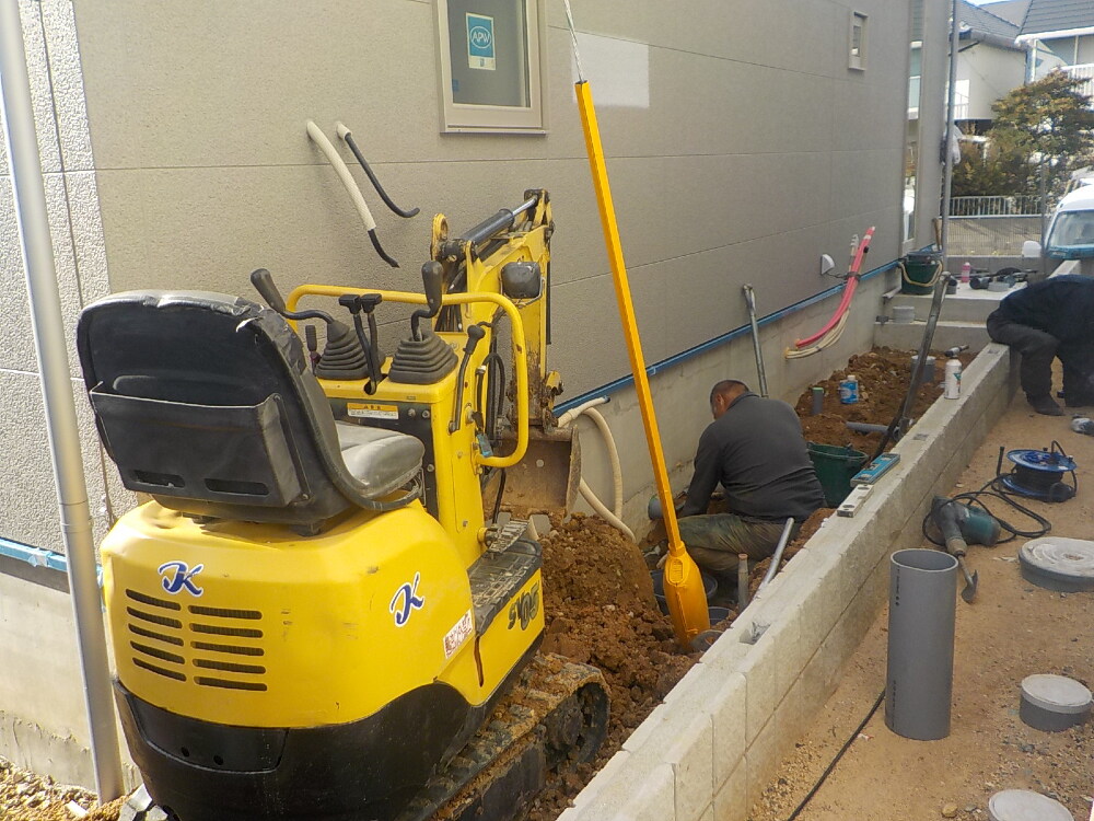 砕石の上に土壌処理を行い、防湿シートの敷き込み、それから、主に外周部にコンクリートを打設(流し込み)していきます。