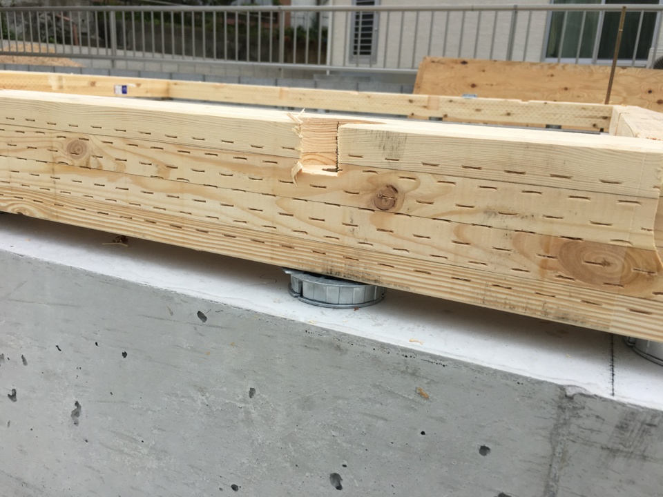 基礎の立ち上がり部分に施工されているボルトは「アンカーボルト」といって、これから施工される土台と基礎をつなぐ大事な接合ボルトです。施工方法によっては意味のないものになってしまいますので、正しく施工しております(画像で一番長いボルトは、基礎と柱をつなぐボルトです)
