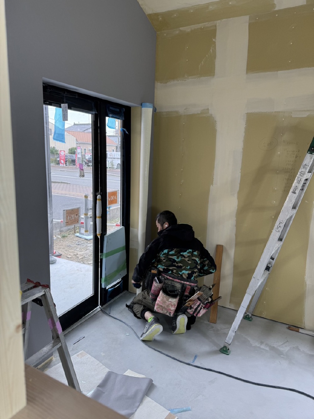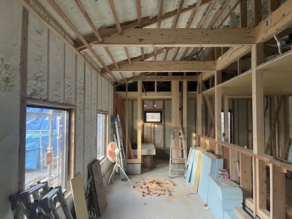 まもなく大工工事が終了して、いよいよ内装工事に入る段階です。 図面と違うところがないか、ビスの留め忘れや巾木など未施工部分がないかチェックしていきます。