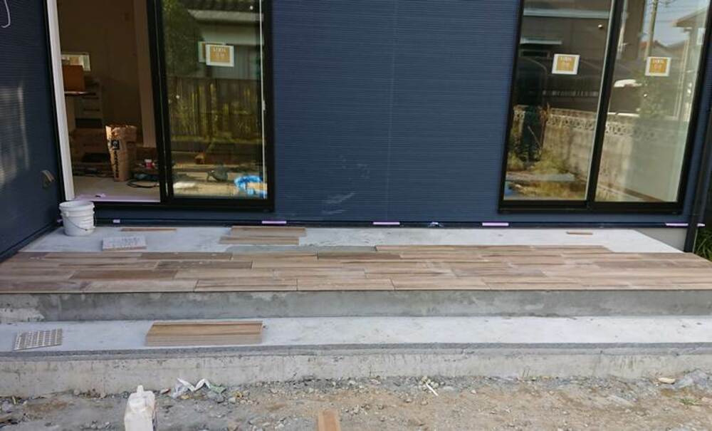 テラスにタイルを貼っています。