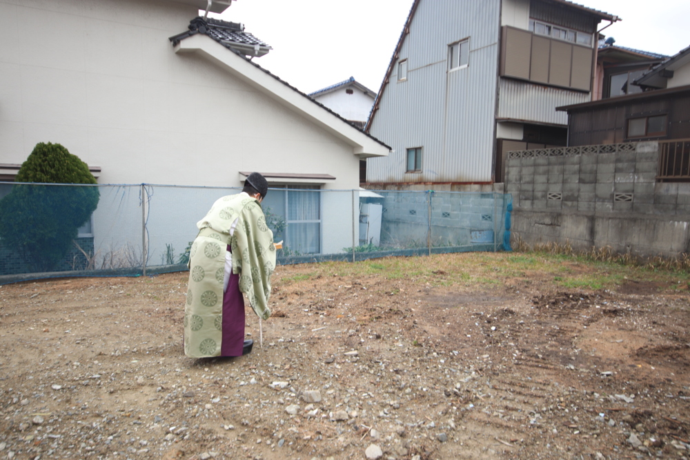 地鎮祭は、家の建築工事を始める前に土地神様に土地を使用する許しを請い、工事の安全を祈願する儀式として昔から行われてきました。