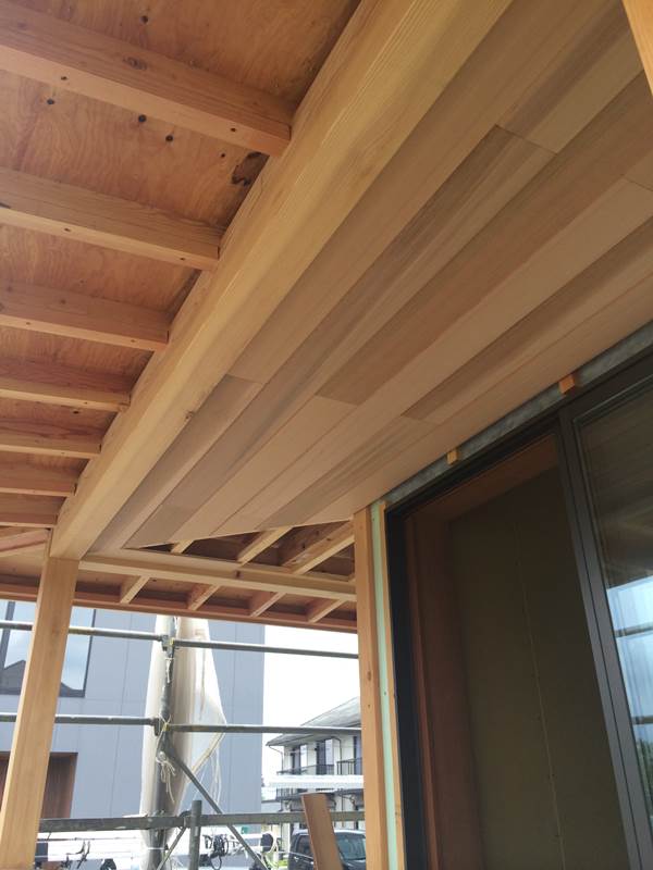 見上げると軒下がこんなに立派で、美しいんです。木造住宅の粋(すい)の部分ですね。