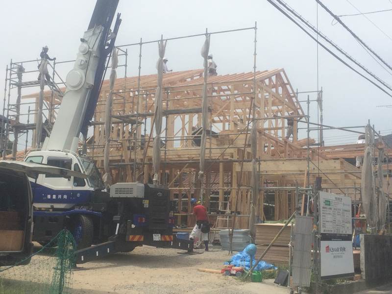 朝に始めた上棟もすっかり日が西に傾く頃に