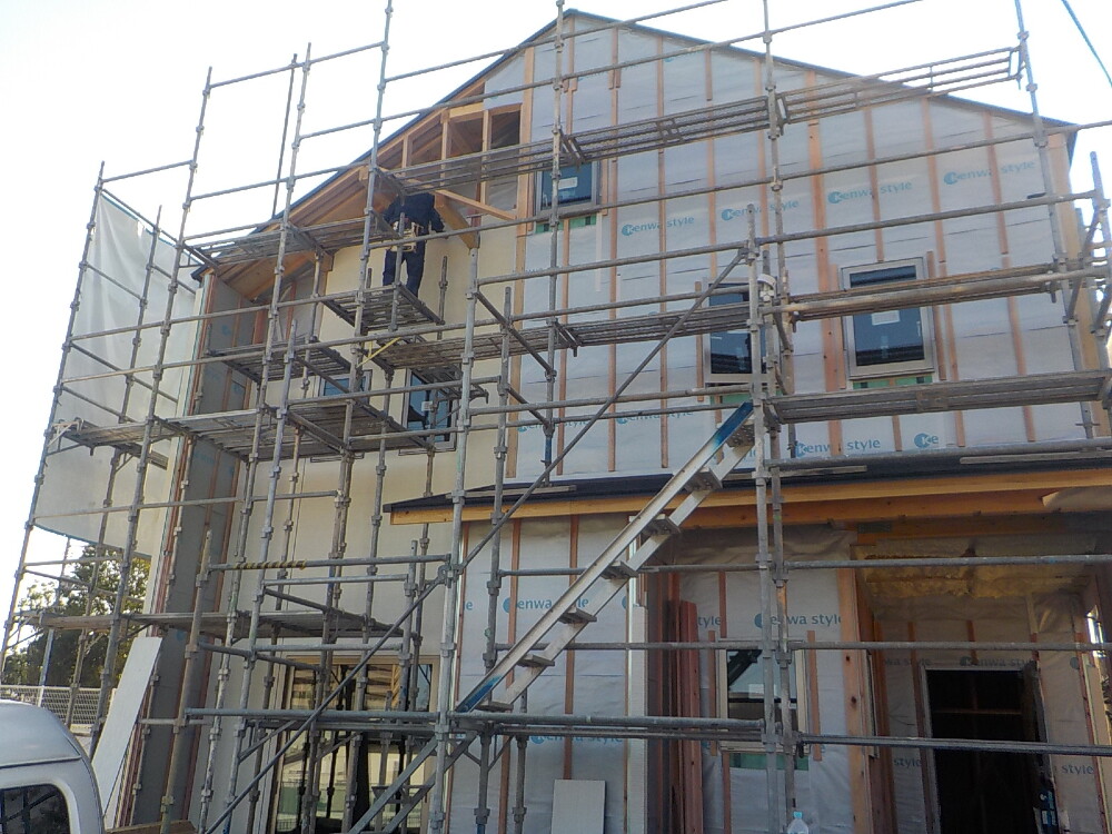 無事棟上げを行う事が出来ました。ご協力頂きました業者さん、そして近隣の皆様、ありがとうございました。