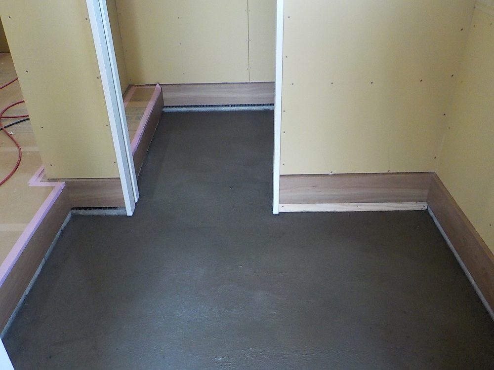 水蒸気を通さないため、土台の上に防湿フィルムを貼り、その上に基礎をつくっていきます。
