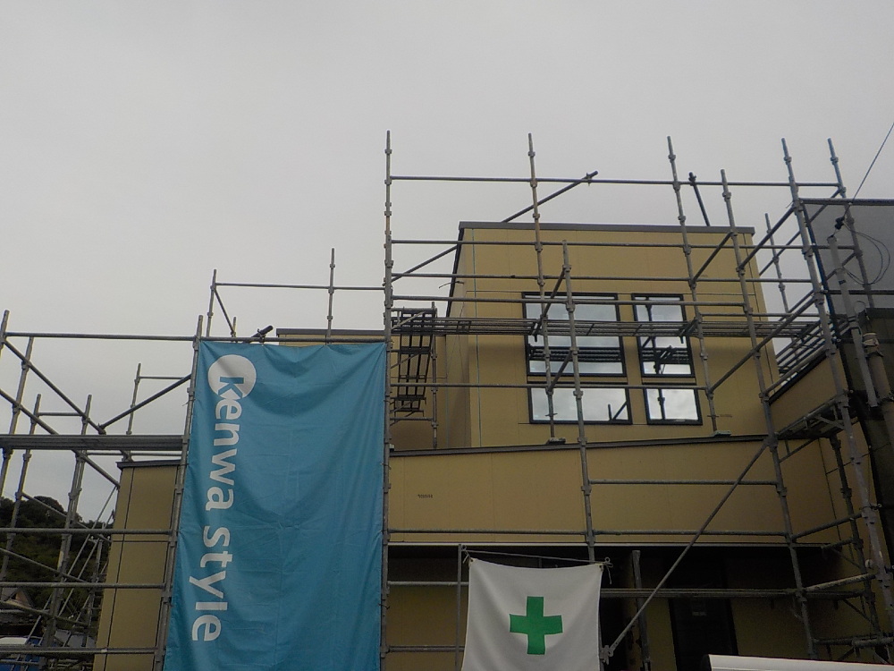 サイティング貼りが終わったので足場が撤去され、お家全体が見えるようになりました(^^)/