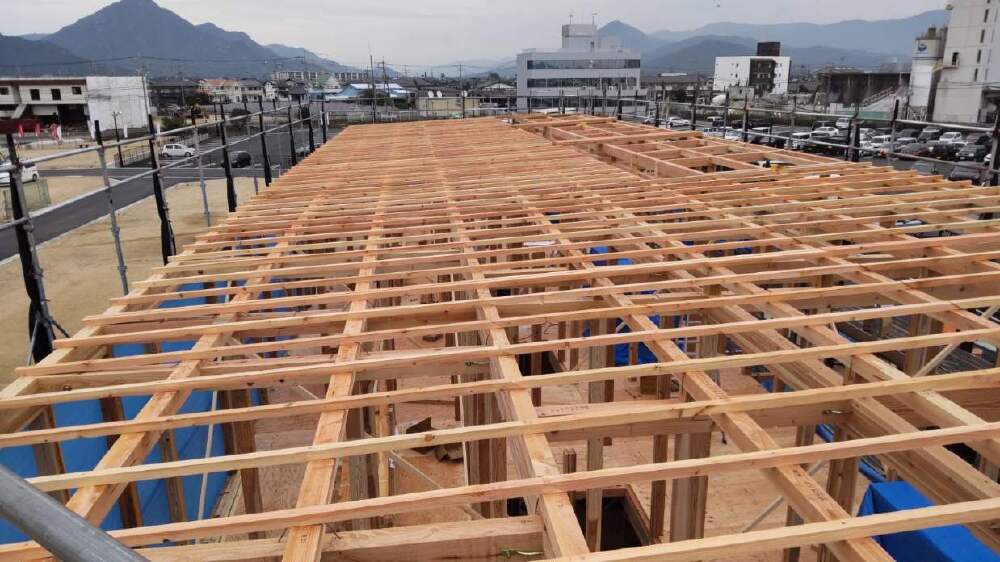 このようにプレカットされた木材を用いる事で、施工に無駄が無く、正確な計測検査がされており安心できる上、効率よく作業が進められます。