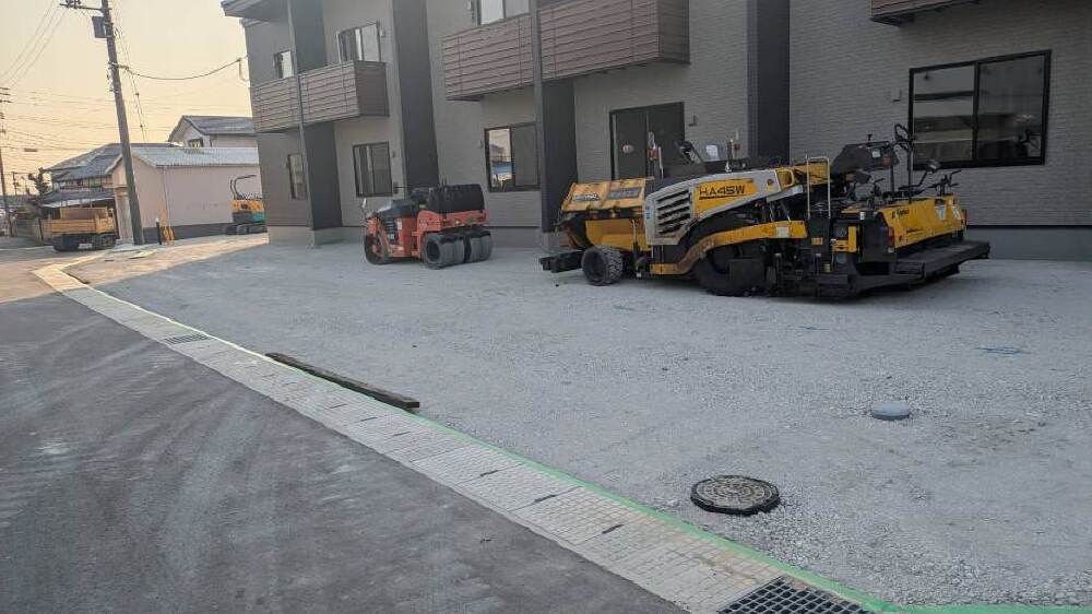 アスファルトの下地工事が行われています。