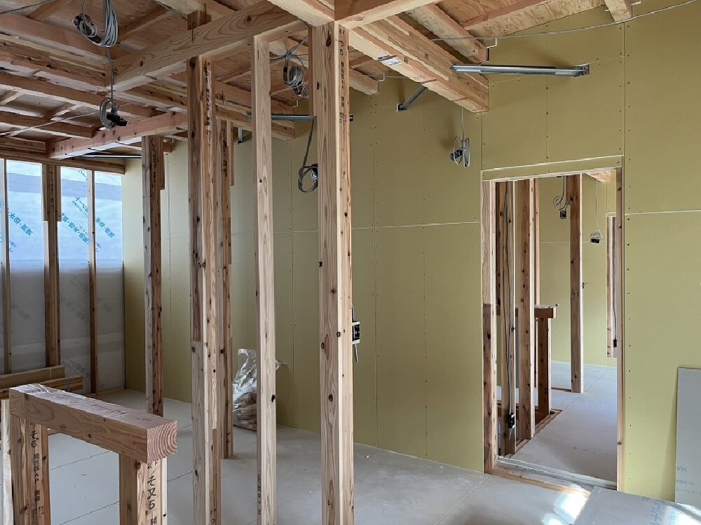 石膏ボード貼り工事施工中です。
