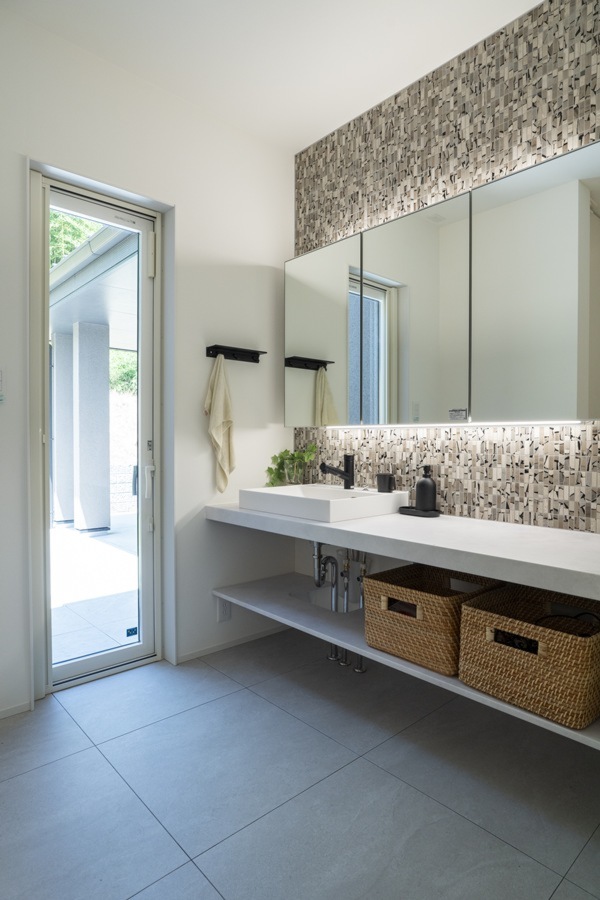 モザイクタイルが美しい、こだわりの洗面コーナー。
