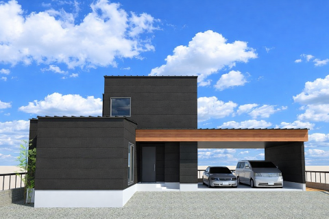 外壁面に耐力面材を施工しています。