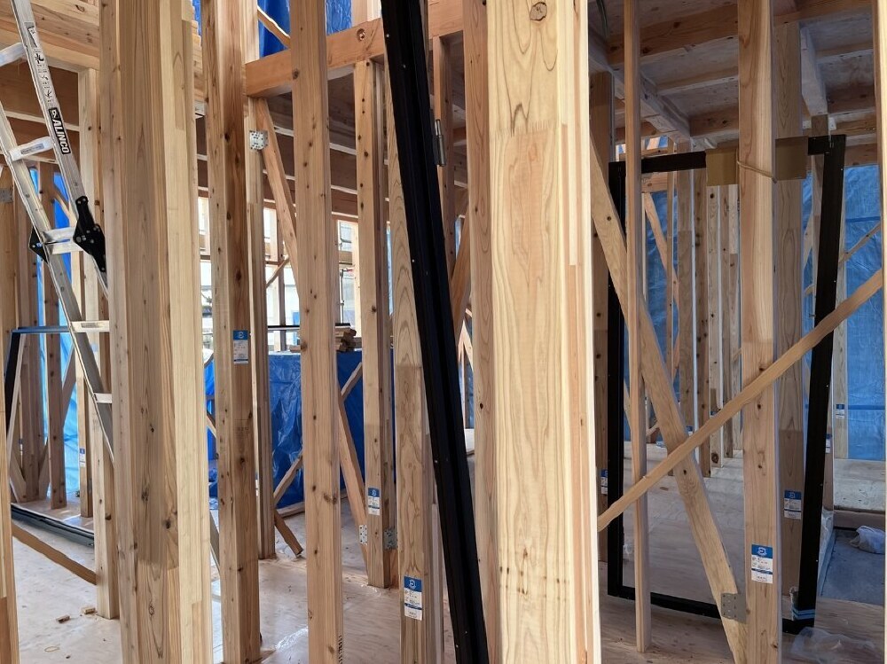 仮筋交いとは上棟の際に、建物の垂直が狂わないように取り付けられるものです。